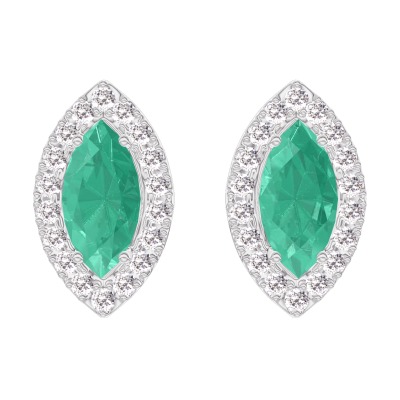 « L'ATELIER » N.º 201432Pendientes Oro blanco 9 quilates - Esmeralda Marquesa 0.3 quilates (2 X) - Halo Diamante