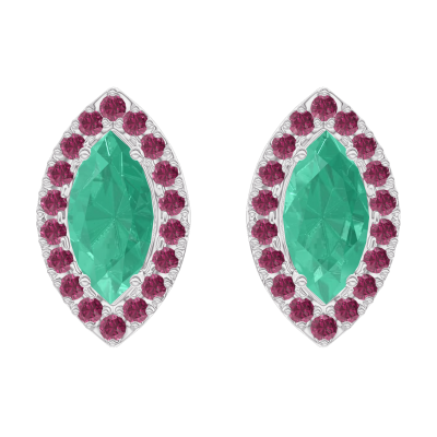 « L'ATELIER » Nº201436Pendientes Oro blanco 9 quilates - Esmeralda Marquesa 0.3 quilates (2 X) - Halo Rubí