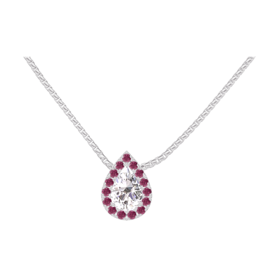 « L'ATELIER » N.º 201592Collar Oro blanco 9 quilates - Diamante Pera 0.3 quilates - Halo Rubí - Cadenas Veneciana