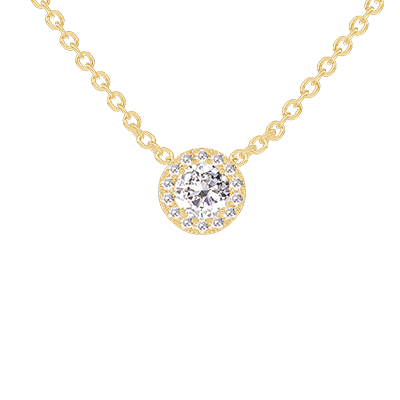 « L'ATELIER » Nº201642Collar Oro amarillo 9 quilates - Diamante de laboratorio redondo 0.3 quilates - Halo Diamante de laboratorio - Cadenas Esclavas