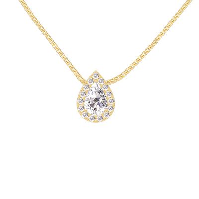 « L'ATELIER » N.º 201774Collar Oro amarillo 9 quilates - Diamante de laboratorio Pera 0.3 quilates - Halo Diamante de laboratorio - Cadenas Veneciana