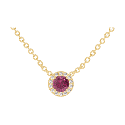 « L'ATELIER » N.º 201833Collar Oro amarillo 18 quilates - Rubí redondo 0.3 quilates - Halo Diamante - Cadenas Esclavas