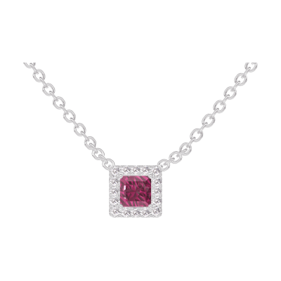 « L'ATELIER » N.º 201868Collar Oro blanco 9 quilates - Rubí Princesa 0.3 quilates - Halo Diamante - Cadenas Esclavas