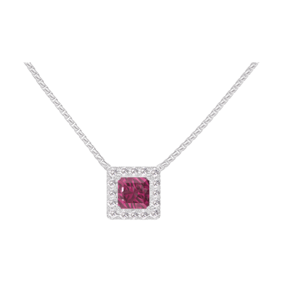 « L'ATELIER » N.º 201872Collar Oro blanco 9 quilates - Rubí Princesa 0.3 quilates - Halo Diamante - Cadenas Veneciana
