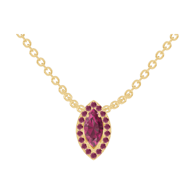 « L'ATELIER » N.º 202002Collar Oro amarillo 9 quilates - Rubí Marquesa 0.3 quilates - Halo Rubí - Cadenas Esclavas