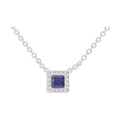 « L'ATELIER » N.º 202060Collar Oro blanco 9 quilates - Zafiro azul Princesa 0.3 quilates - Halo Diamante - Cadenas Esclavas