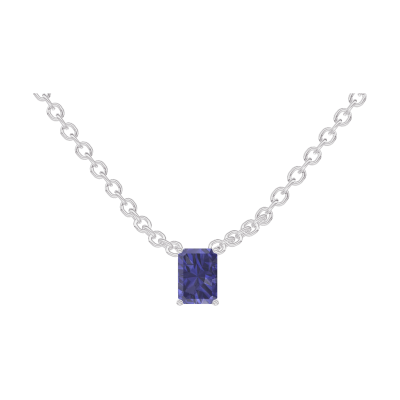 « L'ATELIER » Nº202084Collar Oro blanco 9 quilates - Zafiro azul Rectángulo 0.3 quilates - Cadenas Esclavas