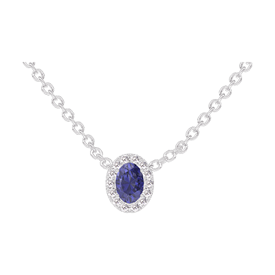 « L'ATELIER » N.º 202123Collar Oro blanco 18 quilates - Zafiro azul Ovalo 0.3 quilates - Halo Diamante - Cadenas Esclavas