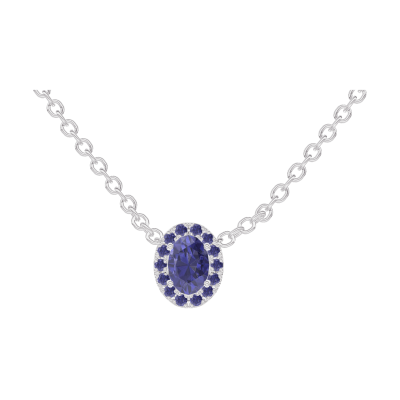 « L'ATELIER » Nº202139Collar Oro blanco 18 quilates - Zafiro azul Ovalo 0.3 quilates - Halo Zafiro azul - Cadenas Esclavas