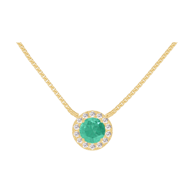 « L'ATELIER » Nº202221Collar Oro amarillo 18 quilates - Esmeralda redondo 0.3 quilates - Halo Diamante - Cadenas Veneciana