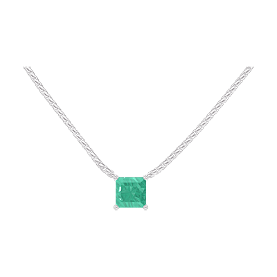 « L'ATELIER » Nº202247Collar Oro blanco 18 quilates - Esmeralda Princesa 0.3 quilates - Cadenas Veneciana