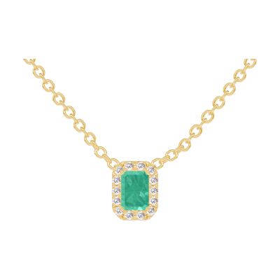 « L'ATELIER » Nº202281Collar Oro amarillo 18 quilates - Esmeralda Rectángulo 0.3 quilates - Halo Diamante - Cadenas Esclavas