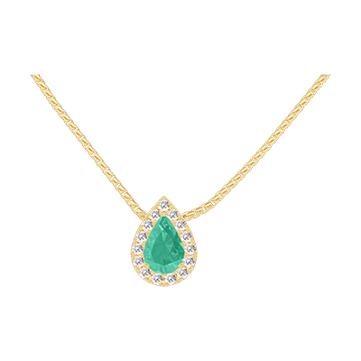 « L'ATELIER » N.º 202349Collar Oro amarillo 18 quilates - Esmeralda Pera 0.3 quilates - Halo Diamante - Cadenas Veneciana
