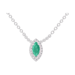 Collar Oro blanco 18 quilates - Esmeralda Marquesa 0.3 quilates - Halo Diamante - Cadenas Esclavas