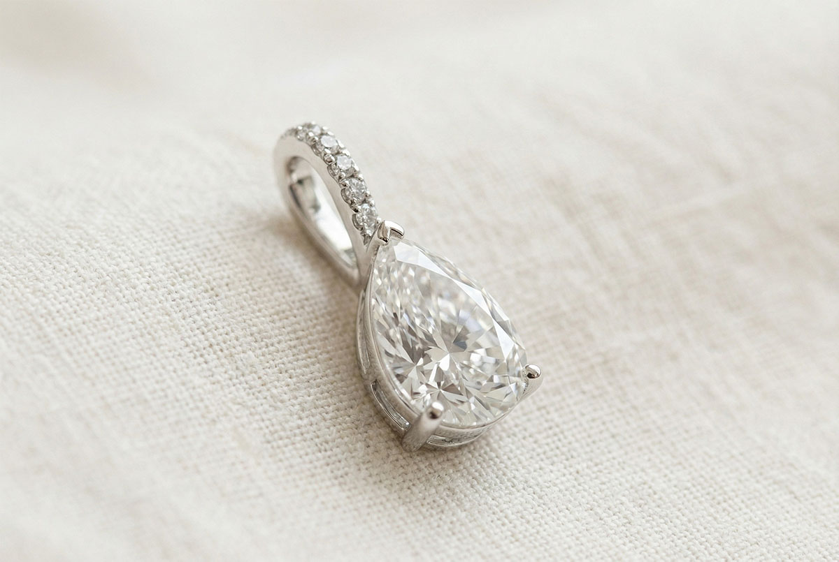 « L'ATELIER » N.º 203176Colgante Oro blanco 9 quilates - Diamante Pera 0.3 quilates - Engastado Diamante - Ninguna cadena 4.4
