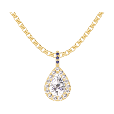« L'ATELIER » N.º 203261Colgante Oro amarillo 18 quilates - Diamante Pera 0.3 quilates - Halo Diamante - Engastado Zafiro azul - Cadenas Veneciana