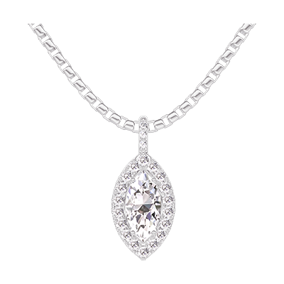 « L'ATELIER » N.º 203448Colgante Oro blanco 9 quilates - Diamante Marquesa 0.3 quilates - Halo Diamante - Engastado Diamante - Cadenas Veneciana