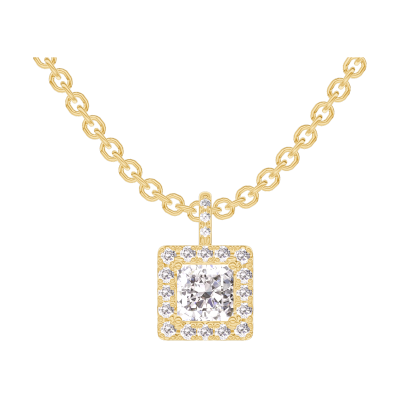 « L'ATELIER » N.º 203813Colgante Oro amarillo 18 quilates - Diamante de laboratorio Princesa 0.3 quilates - Halo Diamante de laboratorio - Engastado Diamante de laboratorio - Cadenas Esclavas
