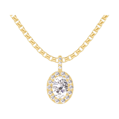 « L'ATELIER » Nº204214Colgante Oro amarillo 9 quilates - Diamante de laboratorio Ovalo 0.3 quilates - Halo Diamante de laboratorio - Engastado Diamante de laboratorio - Cadenas Veneciana