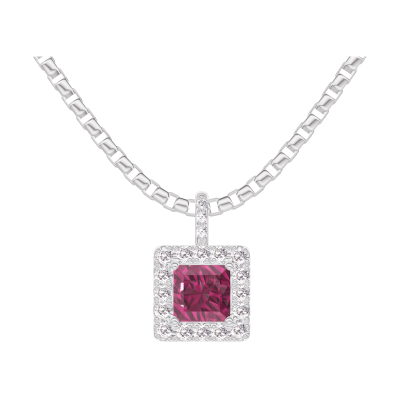 « L'ATELIER » Nº204984Colgante Oro blanco 9 quilates - Rubí Princesa 0.3 quilates - Halo Diamante - Engastado Diamante - Cadenas Veneciana