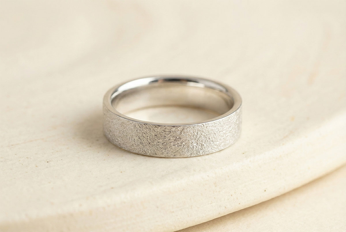 « L'ATELIER » N.º 20501Anillo de matrimonio 5 mm Oro blanco rugoso 18 quilates - Cinta