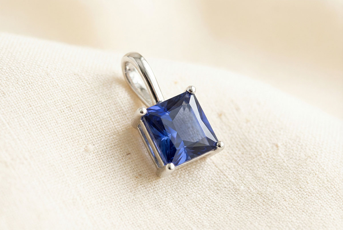 « L'ATELIER » N.º 206052Colgante Oro blanco 9 quilates - Zafiro azul Princesa 0.3 quilates - Ninguna cadena