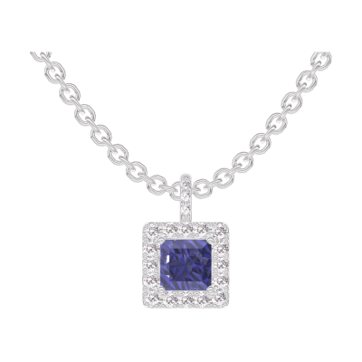 « L'ATELIER » N.º 206120Colgante Oro blanco 9 quilates - Zafiro azul Princesa 0.3 quilates - Halo Diamante - Engastado Diamante - Cadenas Esclavas