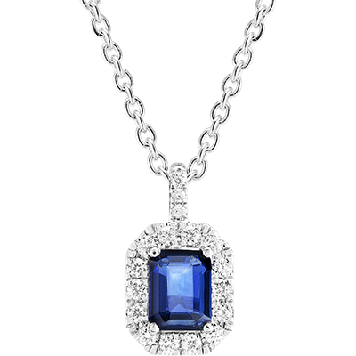 « L'ATELIER » N.º 206311Colgante Oro blanco 18 quilates - Zafiro azul Rectángulo 0.3 quilates - Halo Diamante - Engastado Diamante - Cadenas Esclavas