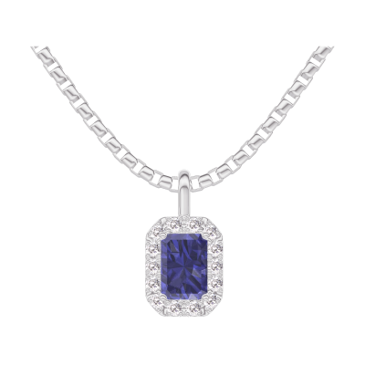 « L'ATELIER » Nº206324Colgante Oro blanco 9 quilates - Zafiro azul Rectángulo 0.3 quilates - Halo Diamante - Cadenas Veneciana