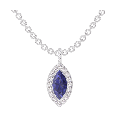 « L'ATELIER » N.º 206888Colgante Oro blanco 9 quilates - Zafiro azul Marquesa 0.3 quilates - Halo Diamante - Engastado Diamante - Cadenas Esclavas