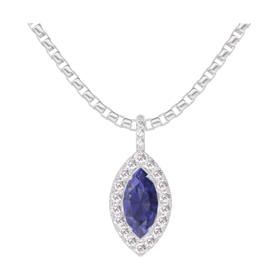 « L'ATELIER » N.º 206903Colgante Oro blanco 18 quilates - Zafiro azul Marquesa 0.3 quilates - Halo Diamante - Engastado Diamante - Cadenas Veneciana