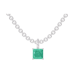 Colgante Oro blanco 9 quilates - Esmeralda Princesa 0.3 quilates - Engastado Diamante - Cadenas Esclavas