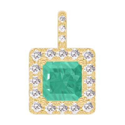« L'ATELIER » Nº207254Colgante Oro amarillo 9 quilates - Esmeralda Princesa 0.3 quilates - Halo Diamante - Engastado Diamante - Ninguna cadena