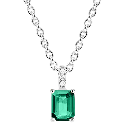 « L'ATELIER » N.º 207416Colgante Oro blanco 9 quilates - Esmeralda Rectángulo 0.3 quilates - Engastado Diamante - Cadenas Esclavas