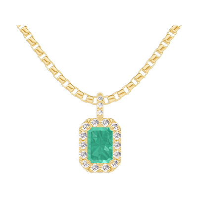 « L'ATELIER » N.º 207477Colgante Oro amarillo 18 quilates - Esmeralda Rectángulo 0.3 quilates - Halo Diamante - Engastado Diamante - Cadenas Veneciana