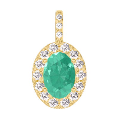 « L'ATELIER » Nº207638Colgante Oro amarillo 9 quilates - Esmeralda Ovalo 0.3 quilates - Halo Diamante - Engastado Diamante - Ninguna cadena
