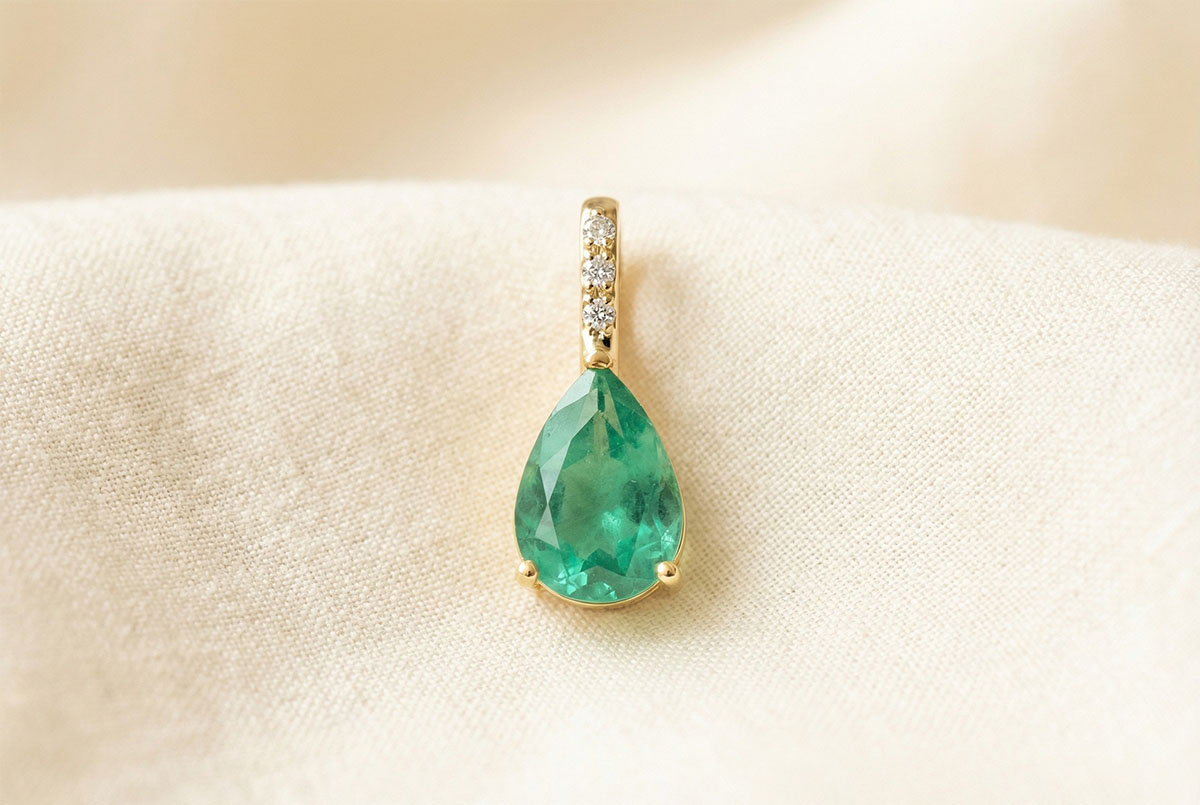 « L'ATELIER » N.º 207781Colgante Oro amarillo 18 quilates - Esmeralda Pera 0.3 quilates - Engastado Diamante - Ninguna cadena 4.4
