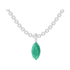 Colgante Oro blanco 9 quilates - Esmeralda Marquesa 0.3 quilates - Engastado Diamante - Cadenas Esclavas