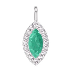 Colgante Oro blanco 9 quilates - Esmeralda Marquesa 0.3 quilates - Halo Diamante - Ninguna cadena
