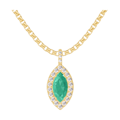 « L'ATELIER » N.º 208054Colgante Oro amarillo 9 quilates - Esmeralda Marquesa 0.3 quilates - Halo Diamante - Engastado Diamante - Cadenas Veneciana
