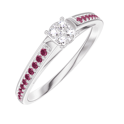 « L'ATELIER » Nº209012Anillo Oro blanco 9 quilates - Conjunto de diamantes naturales redondo equivalente 0.3 - Engastado Rubí 4.5