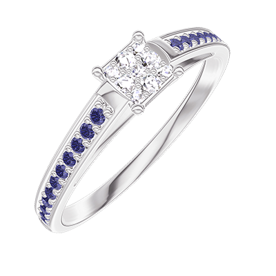 « L'ATELIER » Nº209116Anillo Oro blanco 9 quilates - Conjunto de diamantes naturales Princesa equivalente 0.3 - Engastado Zafiro azul