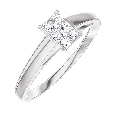 « L'ATELIER » Nº209203Anillo Oro blanco 18 quilates - Conjunto de diamantes naturales Rectángulo equivalente 0.3