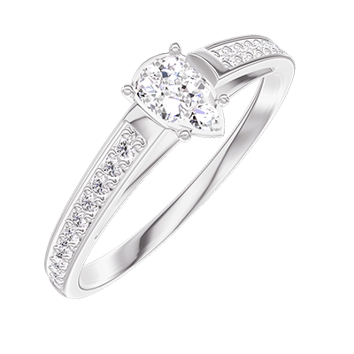« L'ATELIER » Nº209408Anillo Oro blanco 9 quilates - Conjunto de diamantes naturales Pera equivalente 0.3 - Engastado Diamante