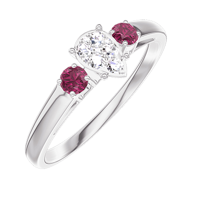 « L'ATELIER » N.º 209444Anillo Oro blanco 9 quilates - Conjunto de diamantes naturales Pera equivalente 0.3 - Piedras laterales Rubí