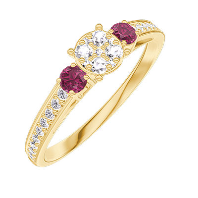 « L'ATELIER » N.º 209645Anillo Oro amarillo 18 quilates - Conjunto de diamantes naturales redondo equivalente 0.5 - Piedras laterales Rubí - Engastado Diamante 4.5