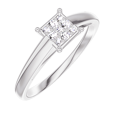« L'ATELIER » Nº209704Anillo Oro blanco 9 quilates - Conjunto de diamantes naturales Princesa equivalente 0.5