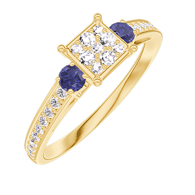 « L'ATELIER » Nº209765Anillo Oro amarillo 18 quilates - Conjunto de diamantes naturales Princesa equivalente 0.5 - Piedras laterales Zafiro azul - Engastado Diamante
