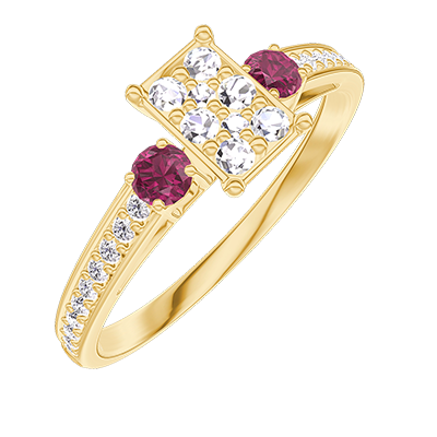 « L'ATELIER » N.º 209845Anillo Oro amarillo 18 quilates - Conjunto de diamantes naturales Rectángulo equivalente 0.5 - Piedras laterales Rubí - Engastado Diamante