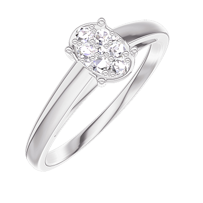 « L'ATELIER » Nº209903Anillo Oro blanco 18 quilates - Conjunto de diamantes naturales Ovalo equivalente 0.5